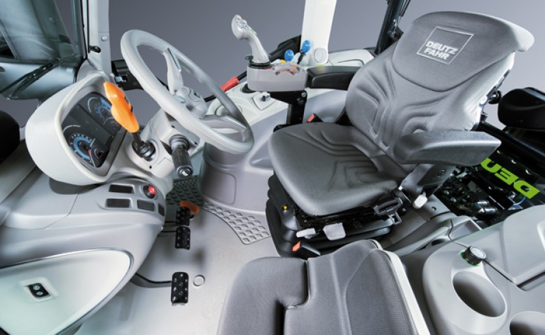 Çalışırken ortamın tadını çıkarın. Yeni 6 Serisi traktörlerin içi etkileyici ve parlak bir tasarıma sahiptir. Motor, şanzıman, PTO, otomatik PTO, hidrolik kontroller ve ışık ile bilgi ekranlarının tüm kontrolleri, kolayca erişilebilir olarak sürücünün sağ tarafındaki yan konsola yerleştirilmiştir. Bunlar mantıksal olarak, kullanım sıklığına göre ve farklı renklerde düzenlenmiştir.
